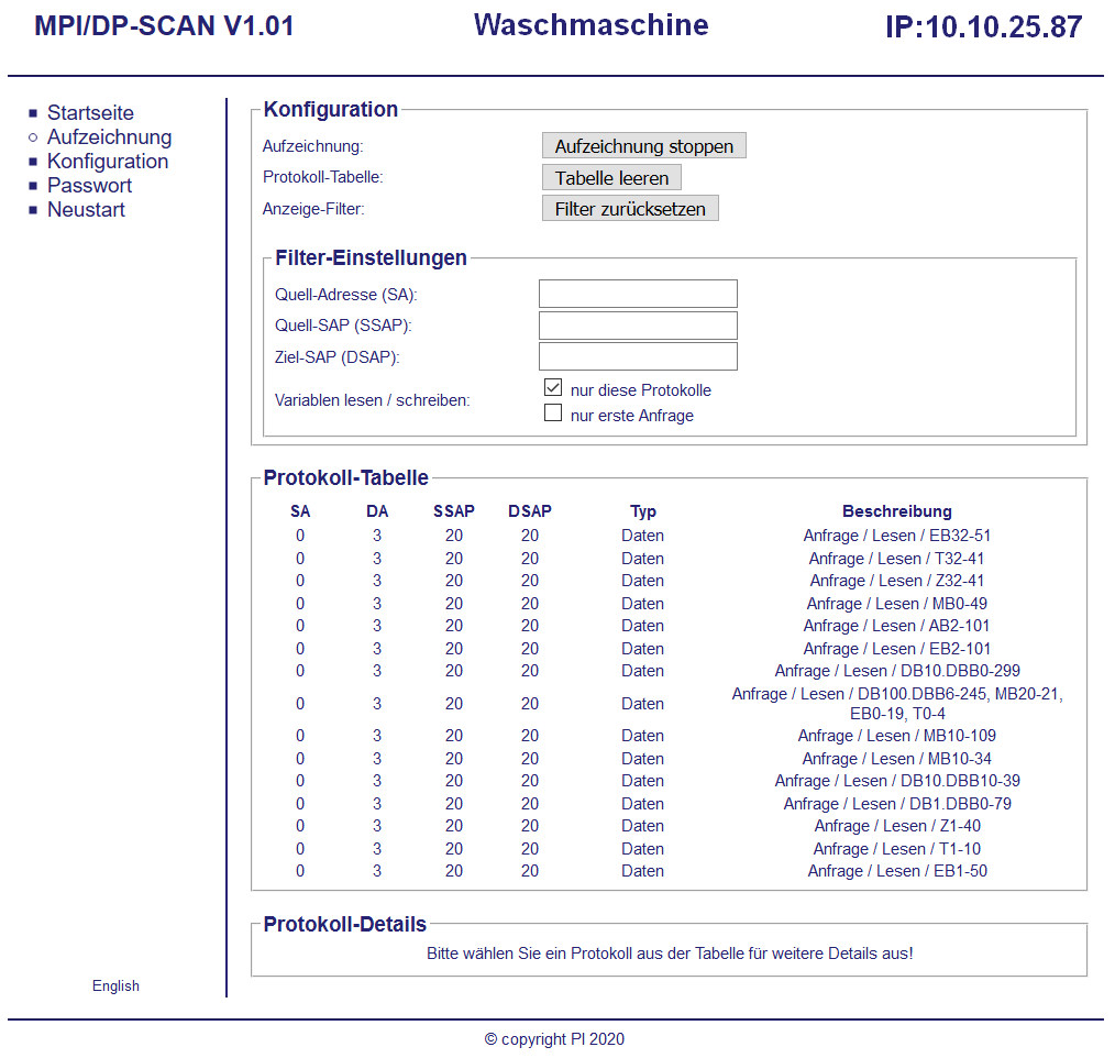 Aktivieren Sie den Scanner und lösen am Panel / SPS eine Aktion aus und Sie sehen im Klartext welche Daten gelesen oder geschrieben wurden.
