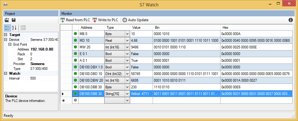 Enthalten: S7-Watch -- das Tool für Variable beobachten/steuern mit Quellcode!